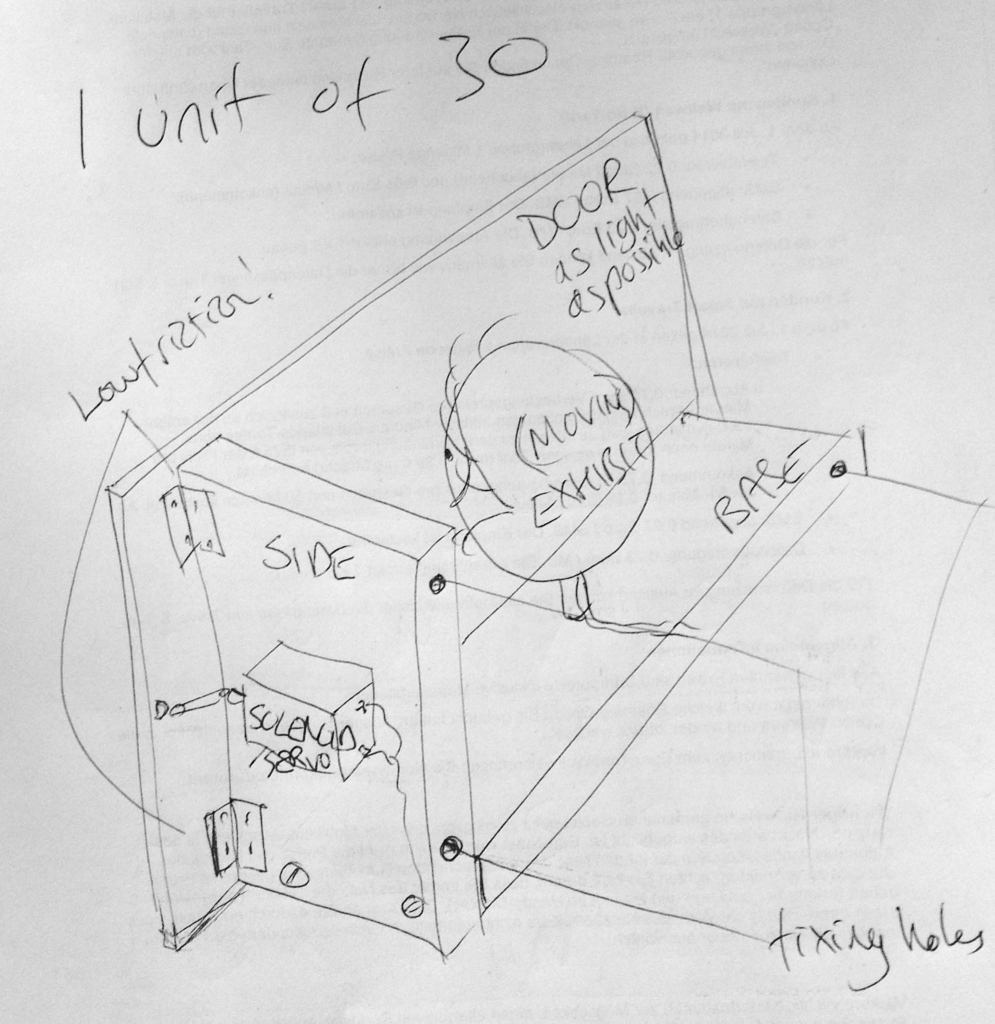 My version had to be female and have loads of movement. I borrowed Peter Markey’s clapping mechanism and decided to keep it simple with just a single cam both moving her arms and opening her mouth.