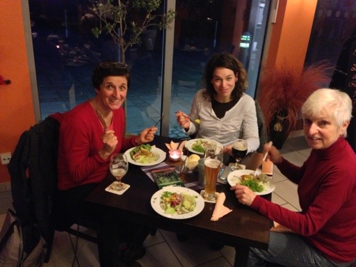 Das Restaurant ist ungefähr auf halbe Strecke.
