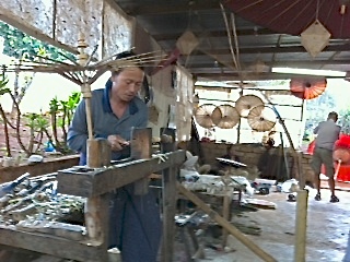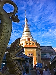 Am Nachmittag kurze Citytour von Mandalay mit einer Trishaw. Besuchen Sie die ursprünglich im Jahre 1784 von König Bodawpaya erbaute Mahamuni Pagode, mit dem vergoldeten Mahamuni-Buddha, der ältesten buddhistischen Statue Myanmars und Holzschnitzer, Goldblättchen-Hersteller und Marmorarbeiter im Viertel der Handwerker.