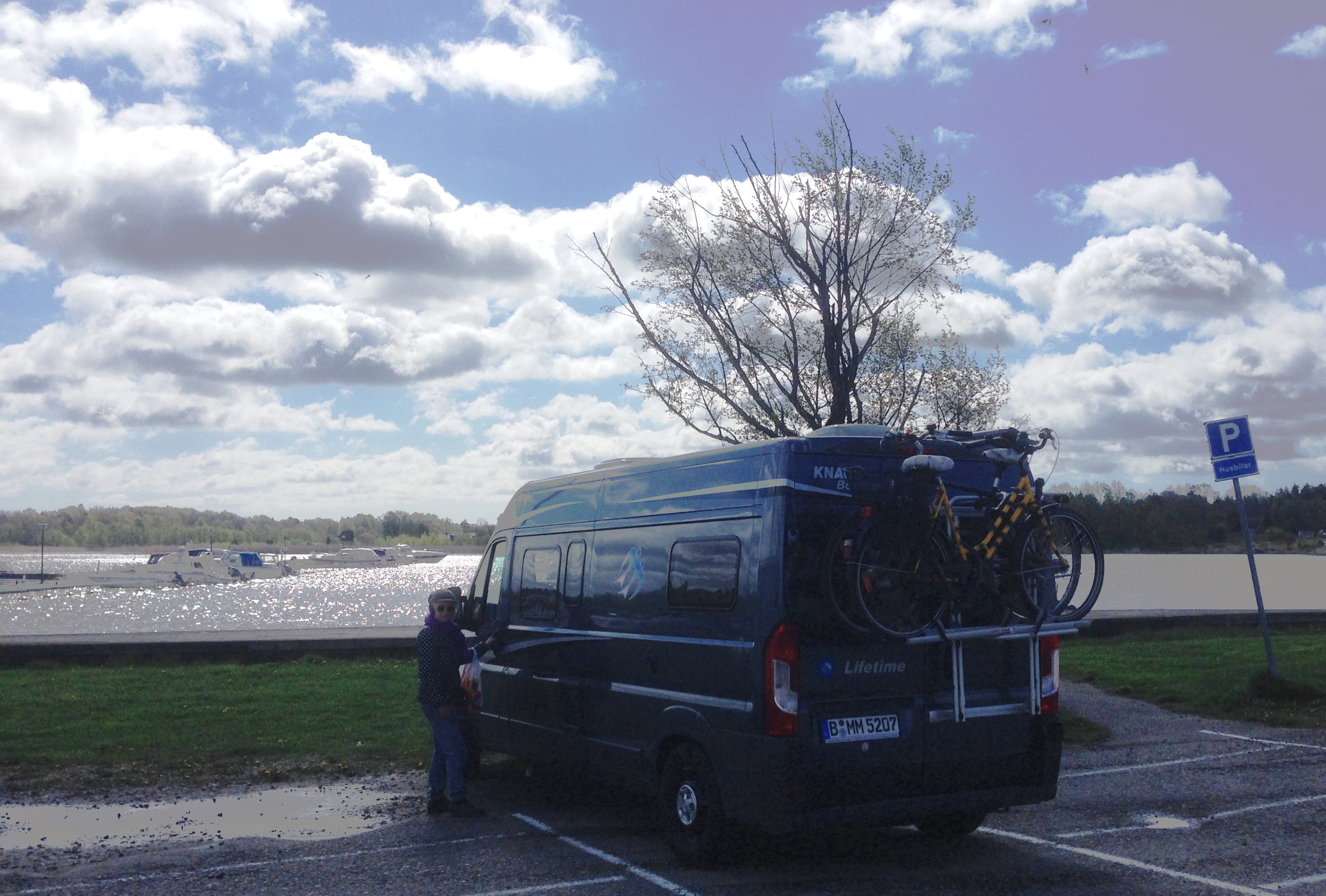 Drove to Göteborg and did a bit of Sunday shopping. You can pay the smallest amount in Sweden with your credit card & PIN number. Unfortunately the charity shops were closed, so we headed south to camp for free right next to the 2 km beach at Apelviken next to Varberg.