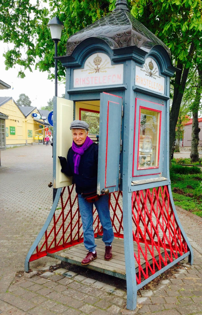 Swedish phone box full of free Swedish books (and Gerhild) right outside the library.