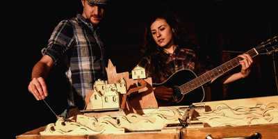 A Heart at Sea uses haunting live music to tell the story of a young Boy who bottles up his heart and throws it into the sea. Original song-writing is set to breath-taking visuals centred around a beautifully carved wooden chest that holds the secrets to the story.