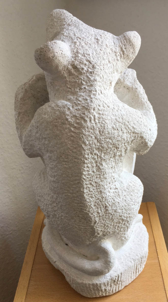 Hannah is made of Portland Limestone. She was born on Portland Bill, in the Tout Quarry.